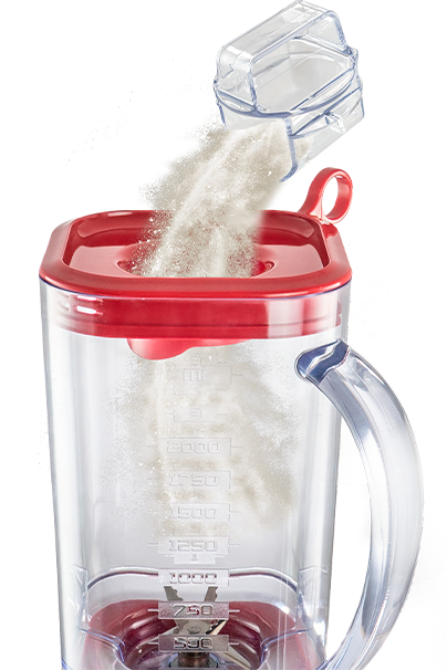 adição de ingredientes e tem a capacidade de 60ml ou de ¼ xícara.